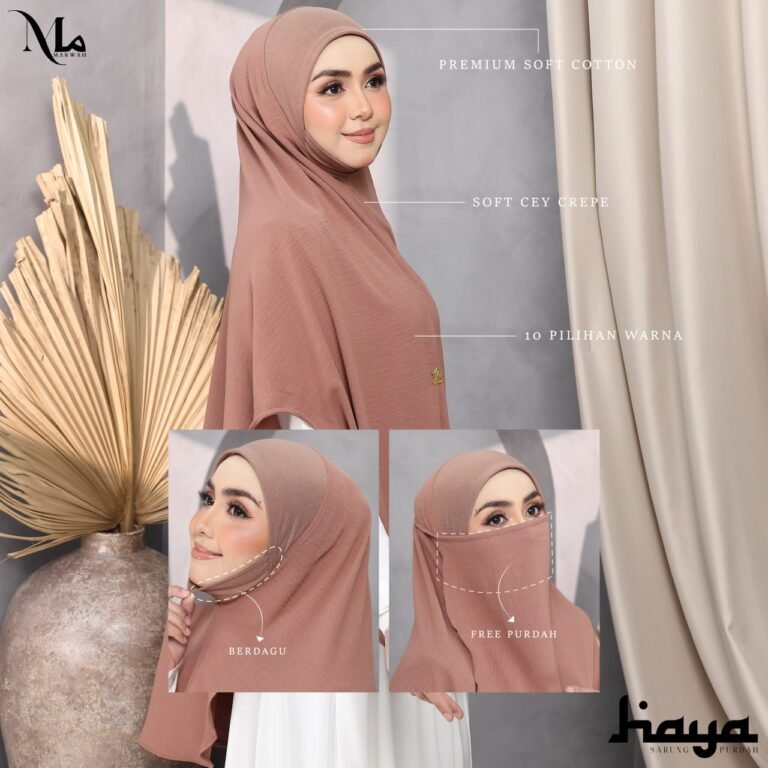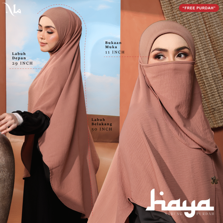 Tapi dengan Haya Exclusive, anda akan kelihatan anggun walaupun bertudung sarung! Kualiti kain premium dan jahitan rapi memastikan penampilan kekal cantik sepanjang hari.